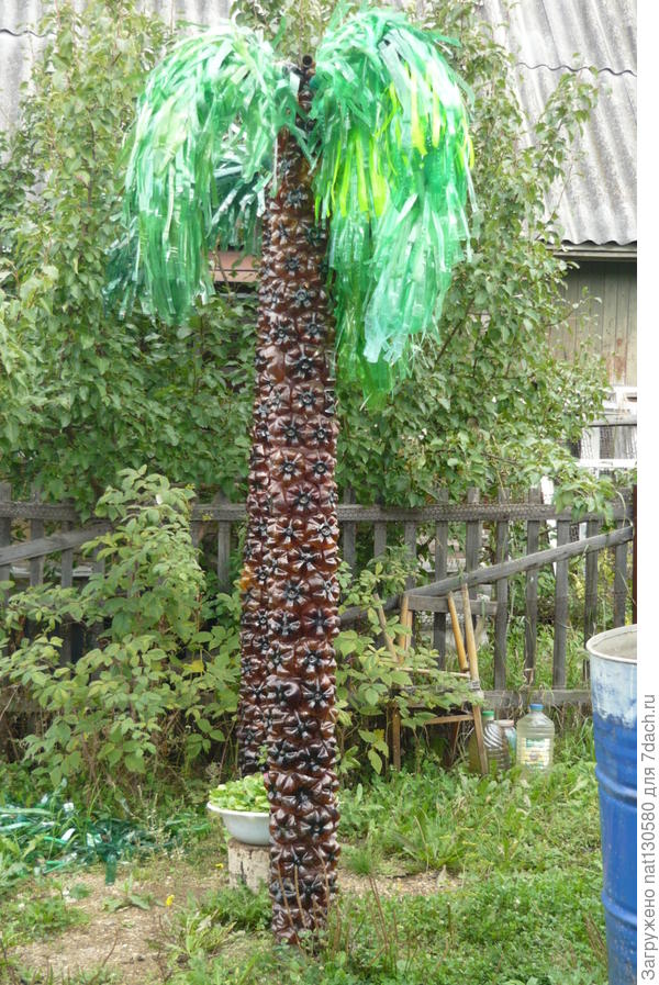Хотите украсить свой приусадебный участок интересной рукотворной поделкой? Создать произведение искусства своими силами из подручных материалов? Пальма из пластиковых бутылок – то, что вам нужно, она превратит территорию в удивительный экзотический сад и будет радовать глаз долгие годы.