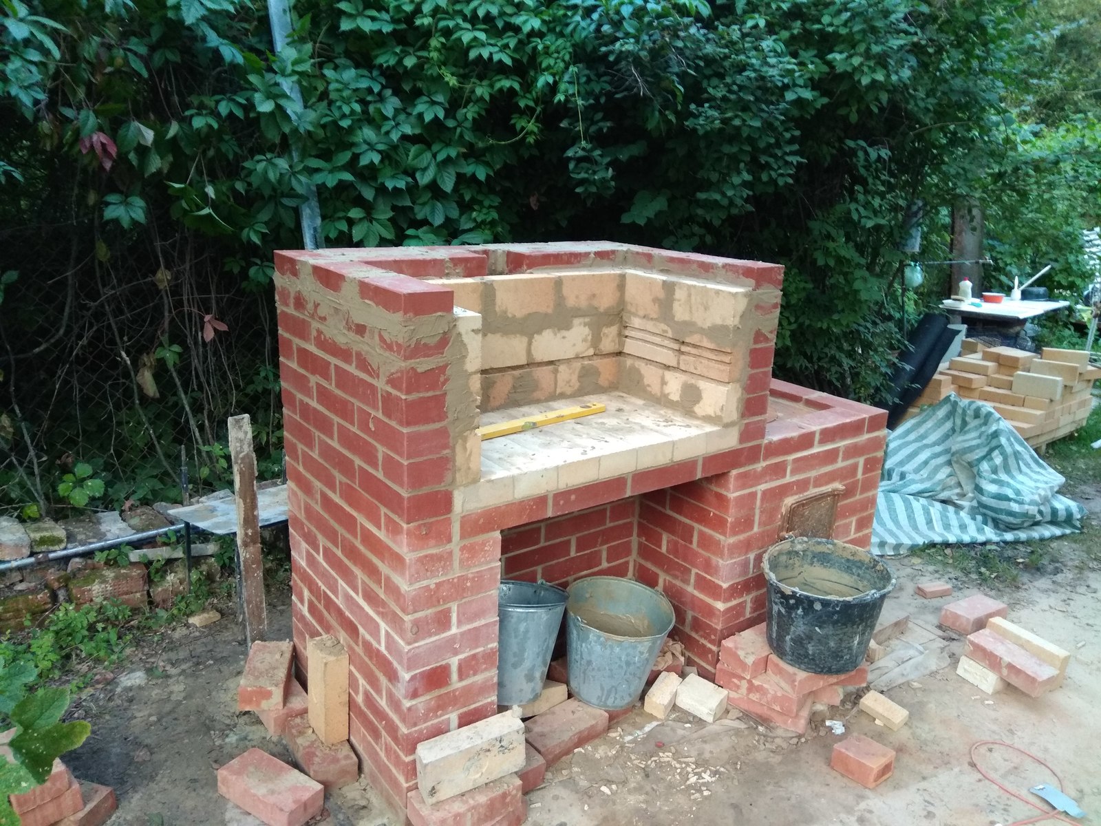 Время от начала до конца — примерно 10 часов. Пять часов в пятницу вечером — большая часть времени приходилась на перетаскивание бетонных блоков и огнеупорных кирпичей от передней части дома к задней.Я все это делал сам. Также был собран фундамент и заложен очаг.