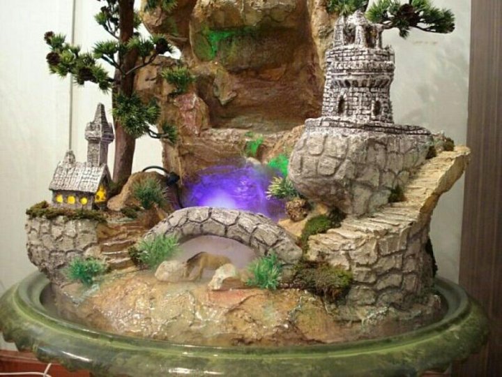 Фонтаном называется природное или искусственно созданное явление необычайной красоты, при котором вода бьет вверх или в сторону. Сегодня существует много разновидностей декоративных комнатных фонтанчиков, способных украсить любой интерьер, множество техник их изготовления, используются всевозможные материалы. Им можно украсить двор, сад, комнату, а также использовать в качестве подарка, украшения праздника, поделки в школу или детский сад. В последних случаях это не обязательно должно быть монументальное сооружение с льющейся водой. Можно сделать красивый фонтан своими руками в домашних условиях из подручных материалов.