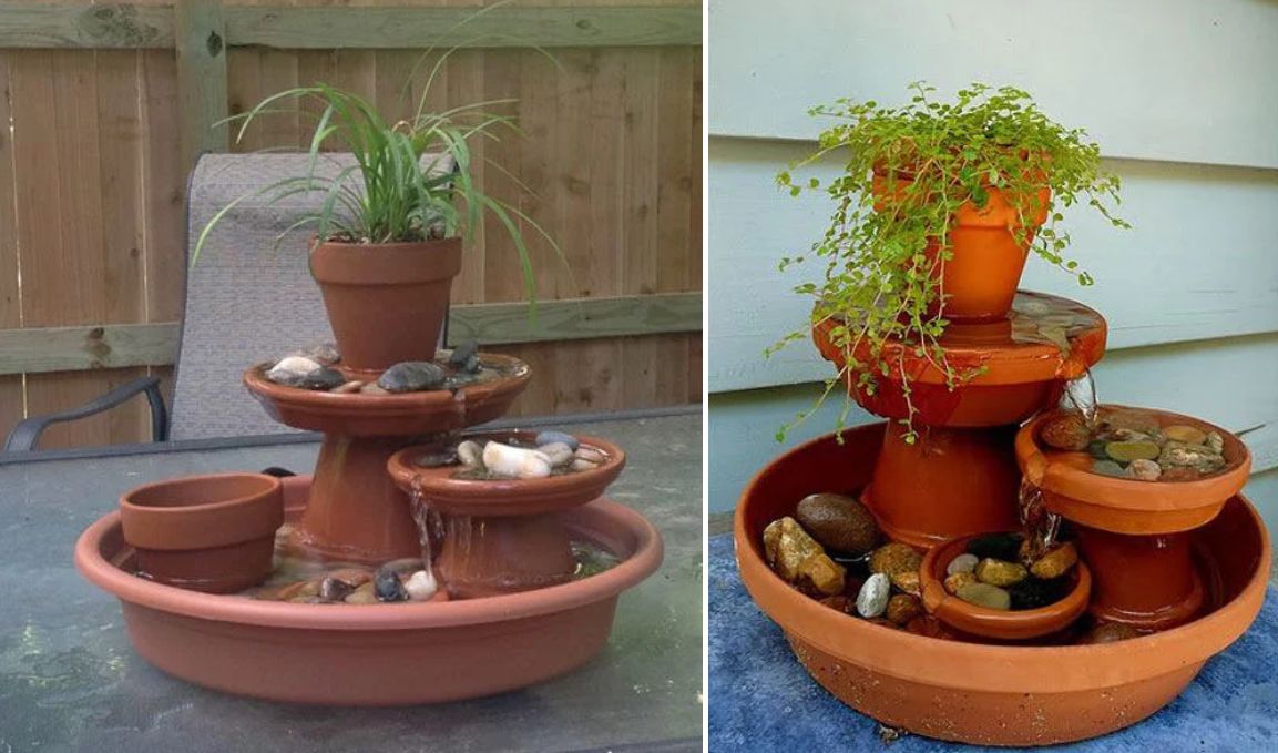 Если хотите меньшего масштаба, трехъярусный фонтан , чем предыдущий дизайн. это может быть для вас. Это простое и недорогое творение, сделанное из трех гончарных чаш разного размера.