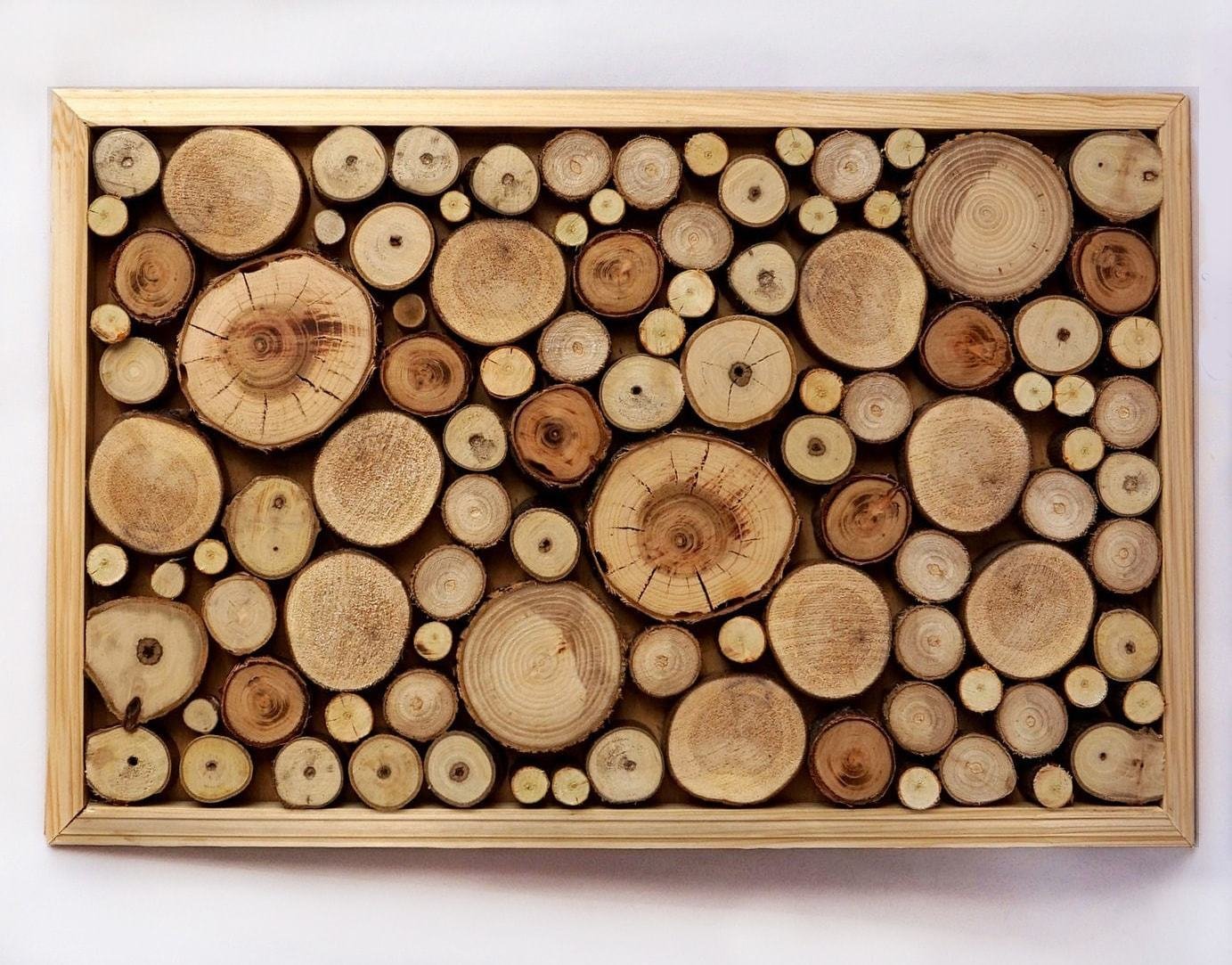 Выбор темы зависит от фантазии мастера, особенностей интерьера, где панно будет висеть. Картину можно поместить под стекло или оставить ее поверхность «открытой», как имитацию поленницы.