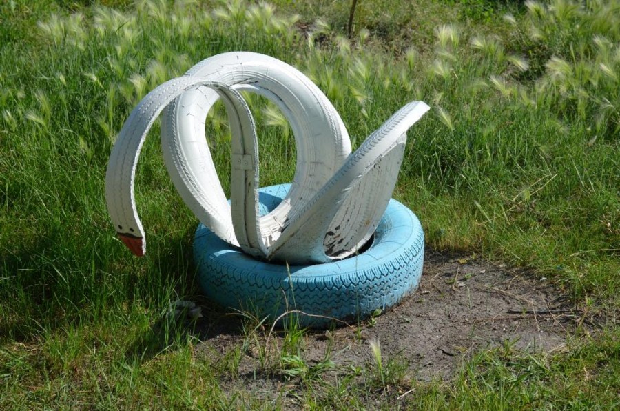 Ещё одной вариацией качели является передвижная качалка. А истинные умельцы выкраивают из шин фигурки самолётов, драконов, лошадок и даже мотоциклов. Для этого мастера выкраивают выбранную фигуру, оставляя обод нетронутым.