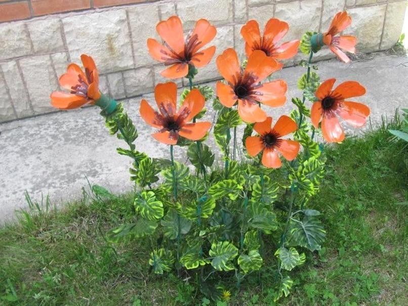 Пластиковые бутылки можно отнести к числу самых дешёвых материалов для садового декора. Помимо этого пластик долговечен и, благодаря его разнообразной цветовой палитре, из бутылок можно выкладывать всевозможные узоры.