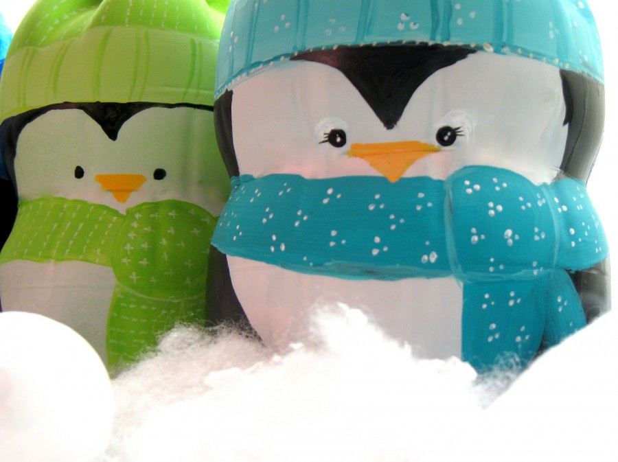 Такую симпатичную поделку-новинку можно изготовить для участка детского сада. Яркие мультипликационные персонажи узнаваемы благодаря ярко-жёлтому цвету, большим круглым глазкам и нестандартной форме туловища.