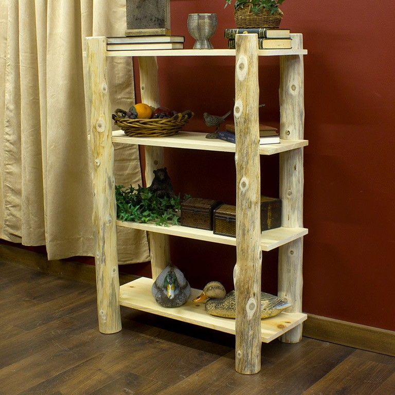 Очень экзотично выглядят полки из дисковидных срубов с корой