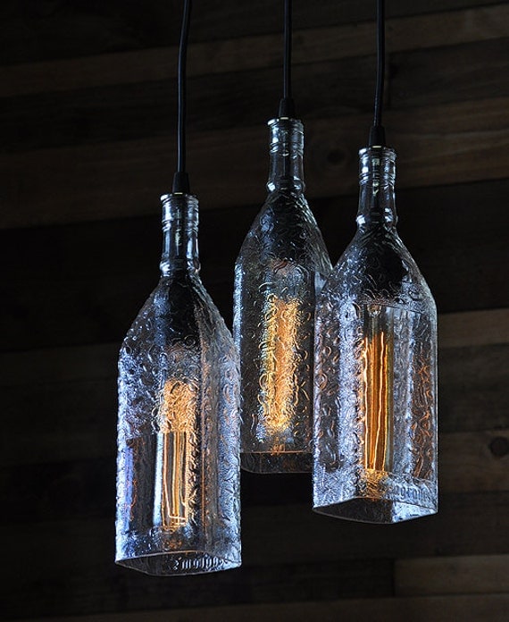 Группирование бутылочных ламп создает великолепный скульптурный эффект.