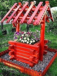 Немалую роль в украшении сада играют расписные изделия. Например, бочки для сбора дождевой воды можно разрисовать, превратив их в матрешек или забавных малышей, старика и старуху, расписав цветами или традиционным народным орнаментом под гжель, хохлому или городецкую роспись.