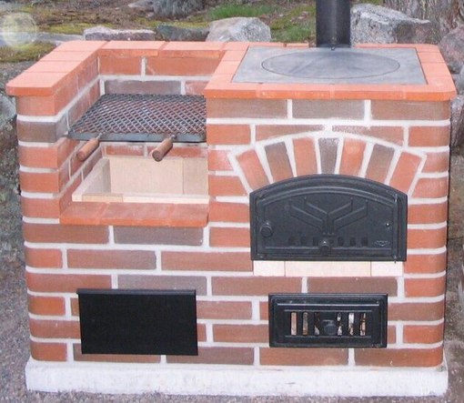 В конструкции такой печи над варочной поверхностью в дымосборнике оборудуется коптильня. Создать ее получится из более доступных материалов, чем барбекю. Особенностью плиты с коптильней служит отсутствие огнеупорной кладки.