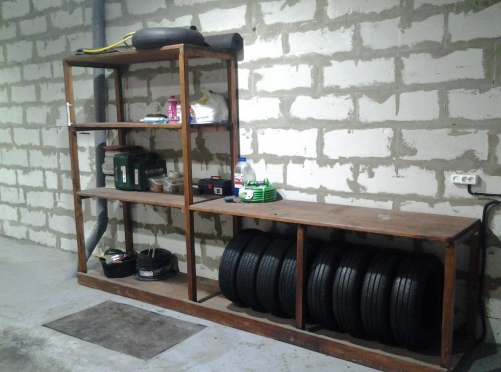 А вот без дисков шины можно хранить только стоя. Вот уже для этого понадобятся полки, как правило, их сваривают из профиля 20х20 или 30х30.