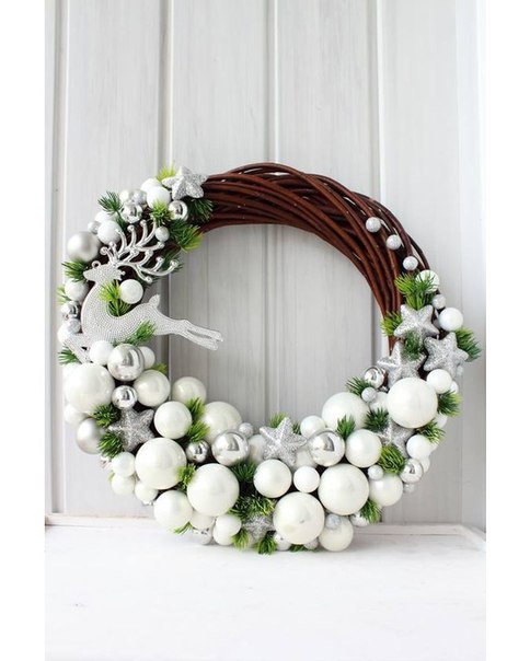 - Новогодний венок из ёлочных шаров