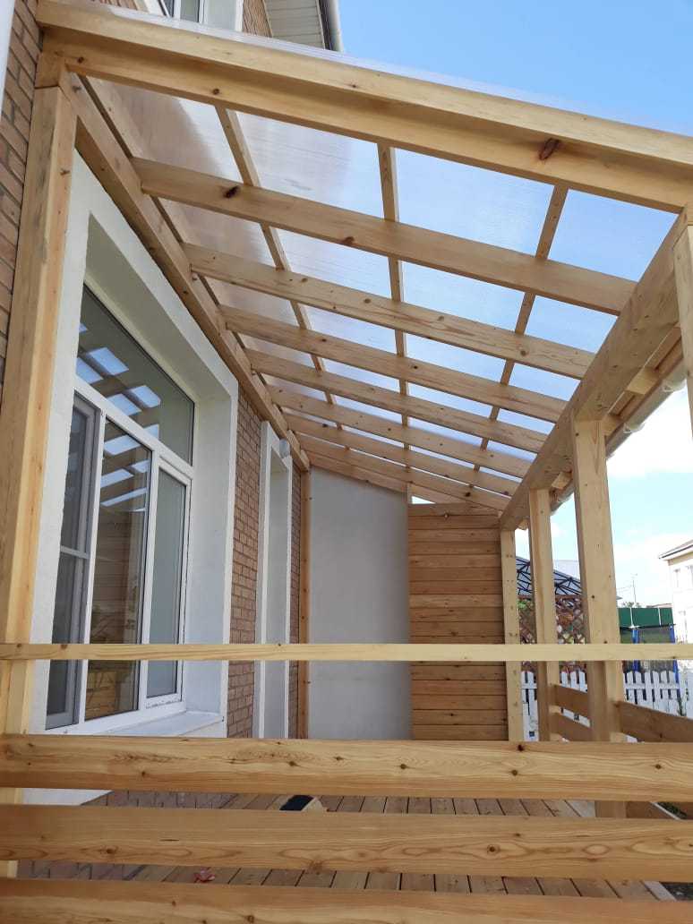 С помощью дерева можно собрать любую уникальную конструкцию веранды