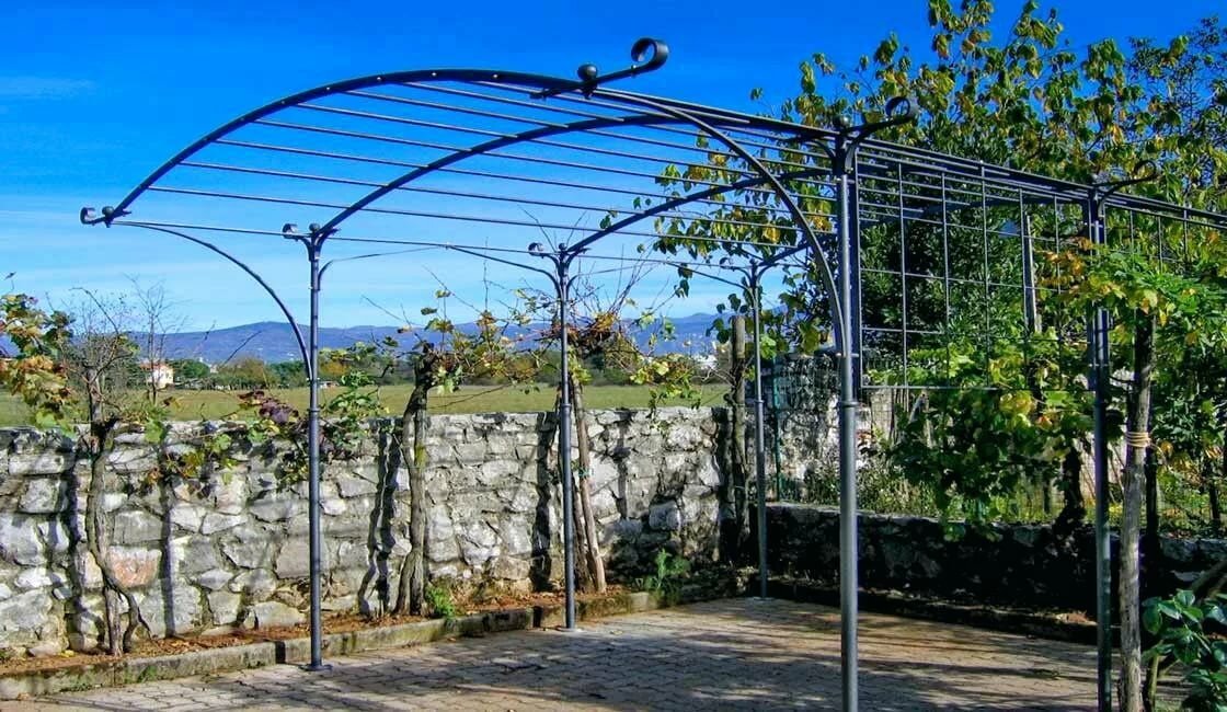 Красивая шпалера для винограда с коваными элементами